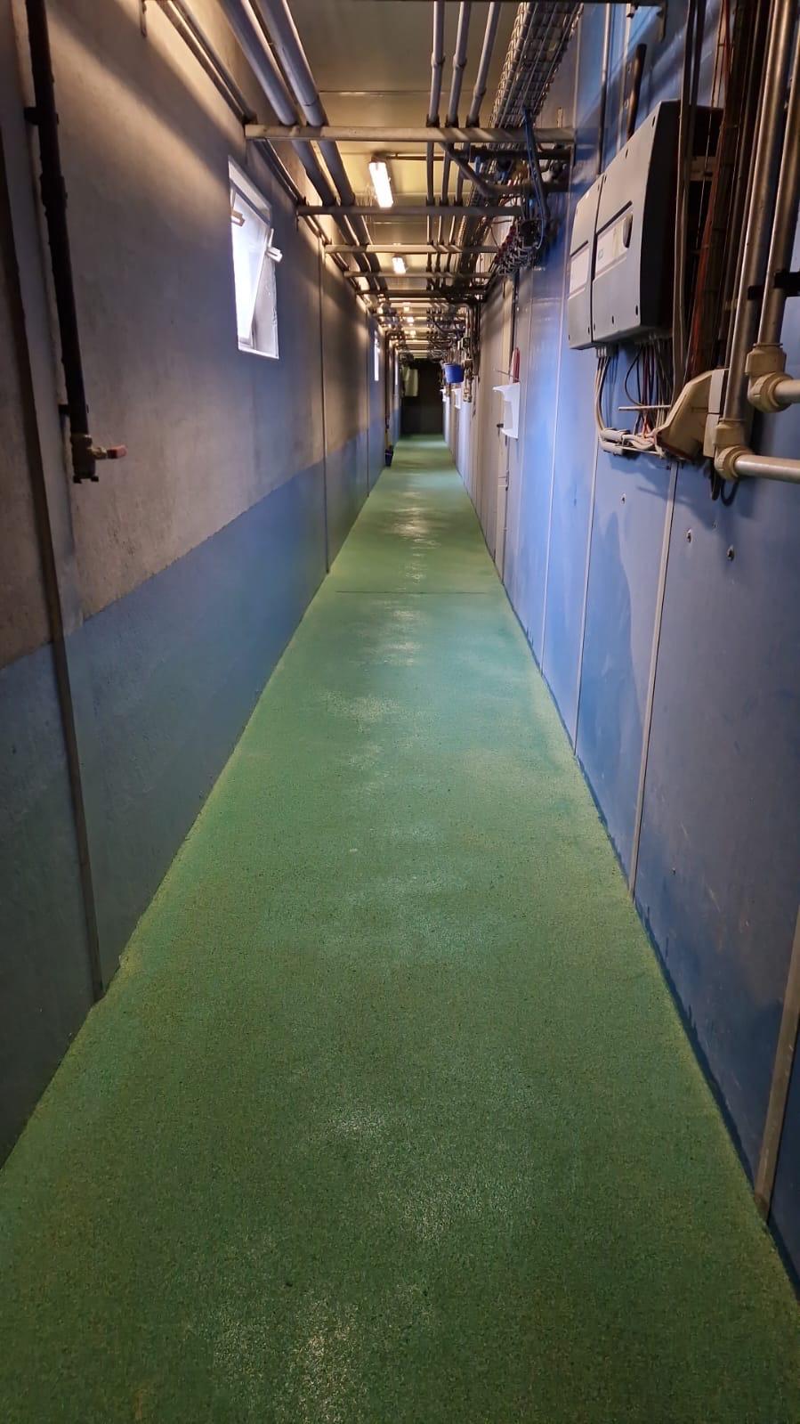 Le revêtement époxy est particulièrement adapté aux bâtiments d’élevage grâce à sa résistance mécanique et chimique. Il peut être appliqué dans différentes zones comme les trémies d’alimentation liquide, les sas d’hygiène ou les locaux techniques.